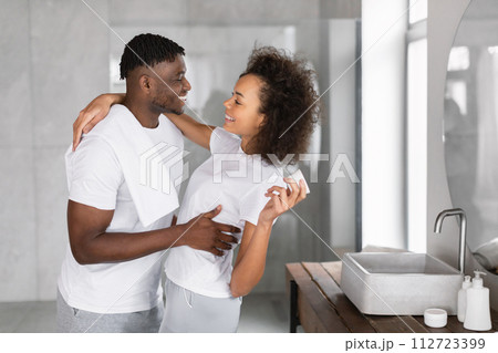Beautiful Black Female Applying Moisturising Serum On Face While Standing Near Mirror