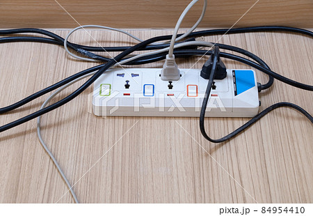 Modern cable connector for overloaded power boards at home. The extension cord is filled with sockets