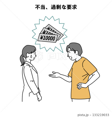 カスハラ 人物イラスト 病院 不当 過剰な請求