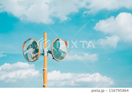 青空に向かって伸びる道路標識