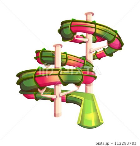 Outline water slide. 3D spiral pipe waterpark construction, water slide in pool aqua park. Waterpark spiral slide water pipes. Vector illustration.