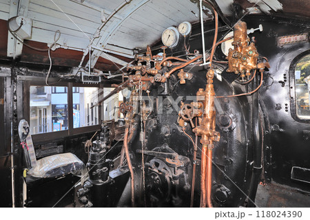 石炭輸送に使われた公開展示されている蒸気機関車の内部