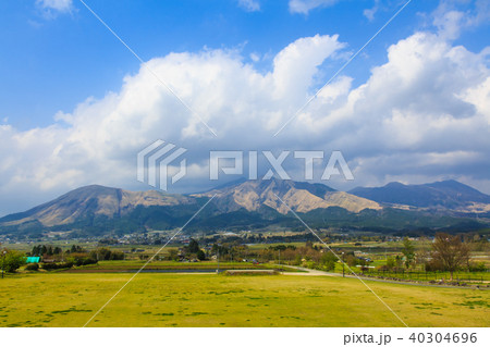 うららかな春空を背景に展望台から観える風景(背景は阿蘇山) 「道の駅 あそ望の郷くぎの」
