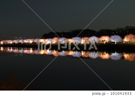 千葉県八千代市新川千本桜まつり2023 河津桜並木のエコライトアップ 新川千本桜 (河津桜)