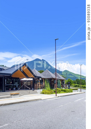(道路標識・周辺風景) 青空を背景にドライブ観光・行楽で映える道の駅 ゆふいん(大分県由布市湯布院)