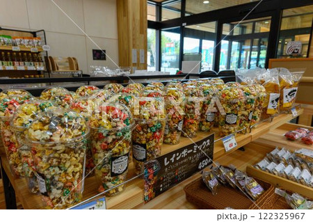 店内風景(カラフルポップコーン)「山都通潤橋ICのすぐ目の前にある道の駅 通潤橋」上益城郡山都町