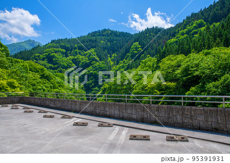 荒川上流 大滝発電所取水口 道の駅大滝温泉付近 新緑の風景
