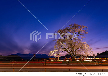 福島県 二本松市 道の駅安達の桜 万燈桜の夕景 ライトアップ