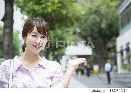 女性 街並み 案内