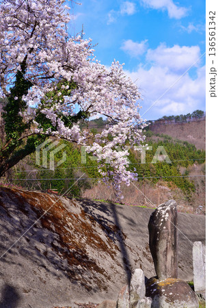 石仏と桜 新治中央運動公園 群馬県利根郡