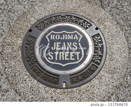 岡山県倉敷市児島 児島ジーンズストリートの名入りマンホール