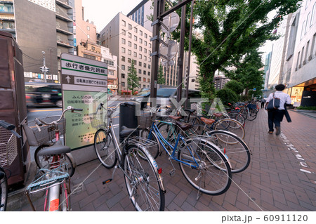 日本の東京都市景観 東京・銀座の放置自転車(いたちごっこが続く)