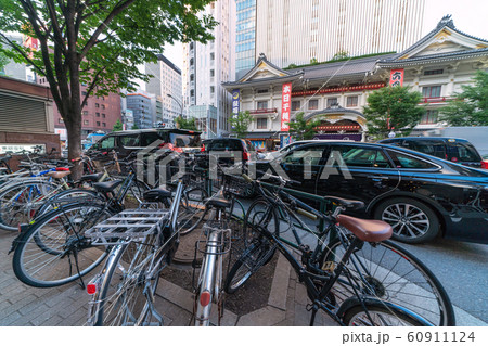 日本の東京都市景観 みんなでやれば怖くない!!-東銀座駅・歌舞伎座前の放置自転車