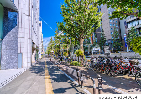 日本の川崎都市景観 コロナ禍…かわさき市税事務所前の歩行者レーンと自転車レーンなど=8月9日