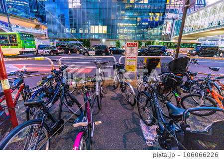 日本の東京都市景観 放置自転車等撤去作業中…=東京・渋谷