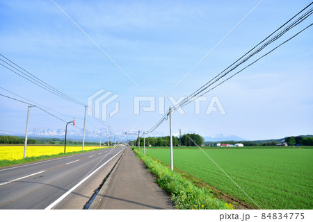 北海道美瑛町の春 道道十勝岳温泉美瑛線 北国の春 北海道イメージ