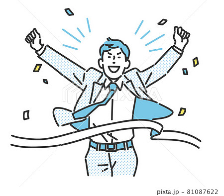 ゴールテープを切るビジネスパーソンのイメージイラスト素材