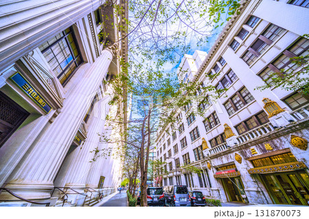 日本の東京都市景観 江戸桜通りなどを望む。一方通行道路…右側にも車を止める驚きの光景