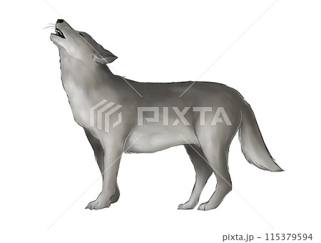 遠吠えする灰色オオカミのイラスト