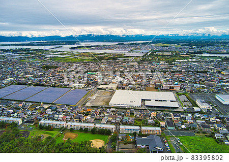 静岡県浜松市の遠州灘から陸地側をドローンでの空からの撮影