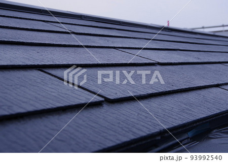 スレート瓦 戸建て住宅の塗装 屋根塗装 現場 足場の組まれた家 塗装工事 足場 住宅工事の様子 養生