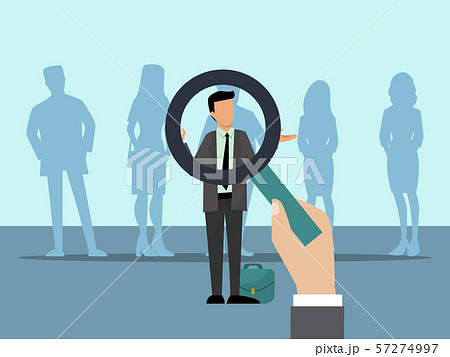 Employer choose candidates with magnifier. Group of people and choice of best employee. Business