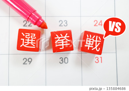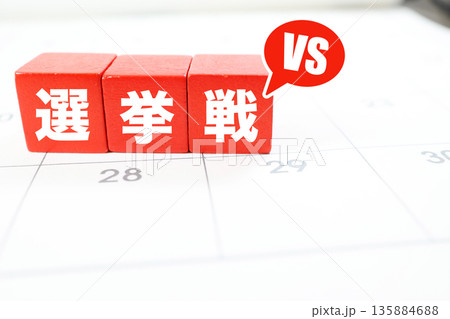 カレンダー背景の選挙戦とVS。選挙期間イメージ。