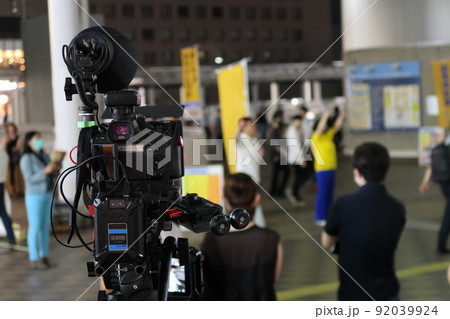 街頭演説の報道(記録)風景