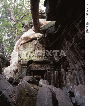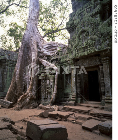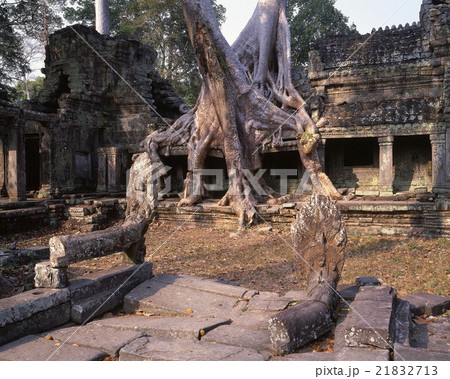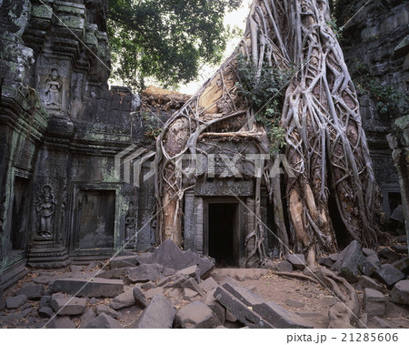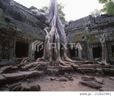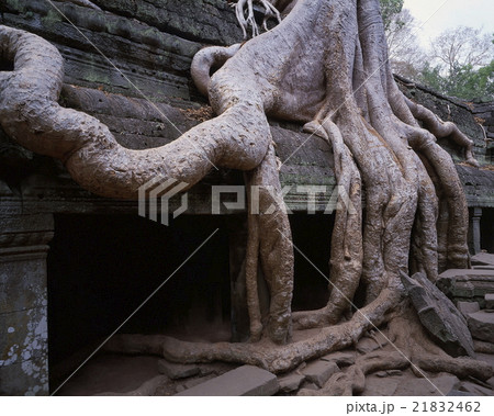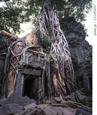 遺跡を浸食するスポアンの木の画像素材(写真・イラスト) 1ページ目
