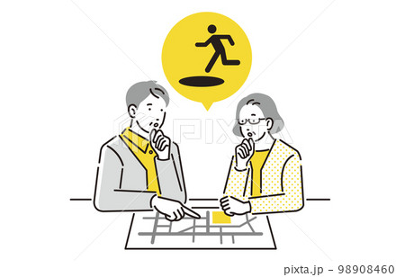 人物 ハザードマップ で避難経路を確認するシニアの夫婦