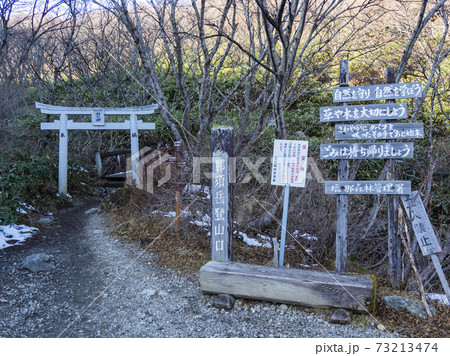栃木県那須町の峠の茶屋駐車場からの登山口(山之神鳥居前)