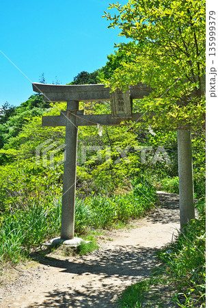 那須温泉神社 殺生石園地へつながる参道の鳥居(春、五月)