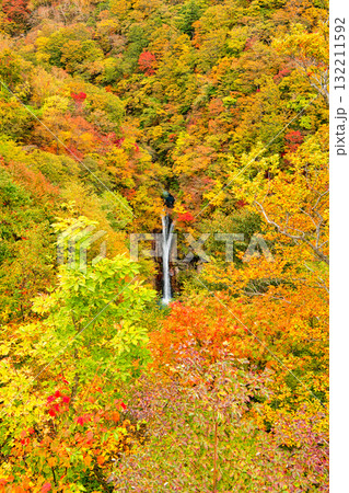 栃木県那須町 秋の紅葉に染まる駒止の滝