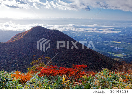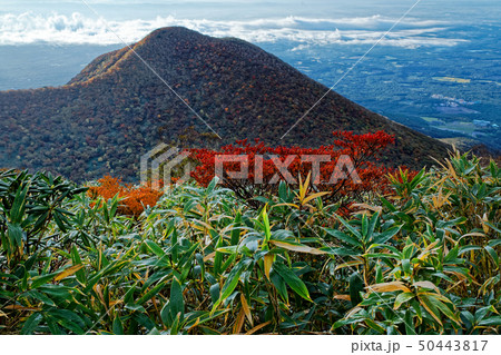 那須・南月山から見る紅葉の黒尾谷岳と那須野の眺め