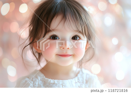 無邪気な笑顔の可愛い赤ちゃんと玉ぼけの背景