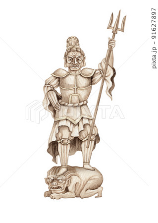 仏教 広目天 天 天部 四天王 仏像 水彩 イラスト