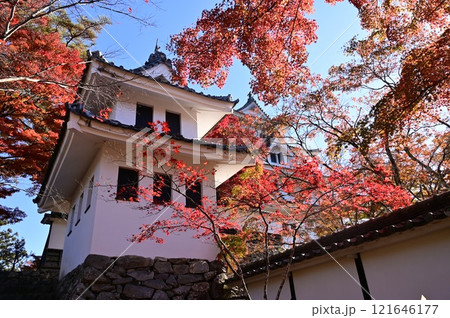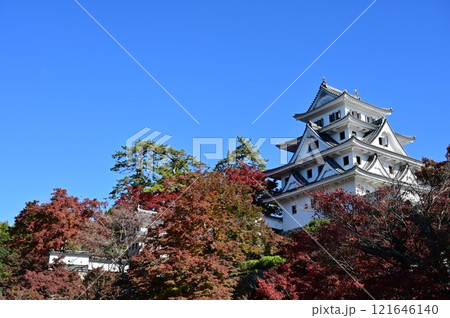 郡上八幡城の桜ノ丸隅櫓と天守閣 紅葉の風景