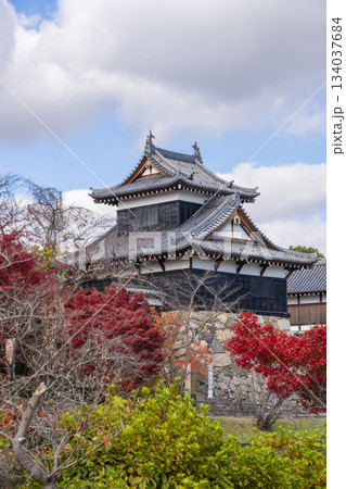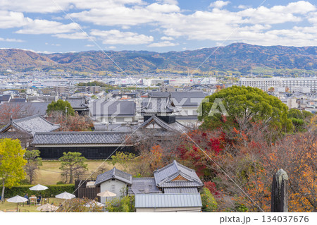 晴天の郡山城 城址会館と紅葉(奈良県大和郡山市)