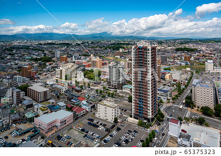 福島県で最も高い郡山駅西口のランドマークビル展望ロビーからの眺め街並み風景