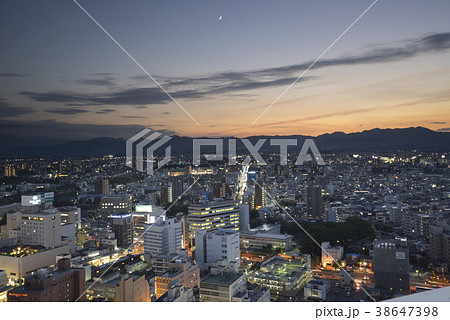 福島県で最も高い郡山駅西口のランドマークビル展望ロビーからの夜景と月