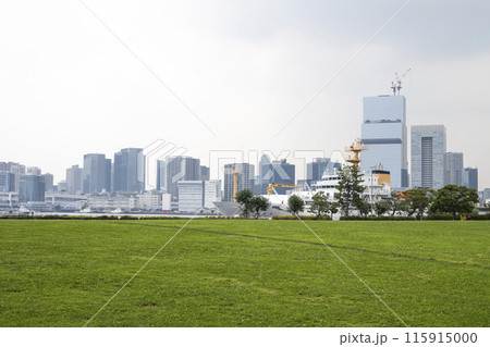 豊洲ぐるり公園 豊洲大橋と高層マンションの風景