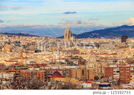 View of Barcelona city from the mountain Montjuic in Catalonia, Spain