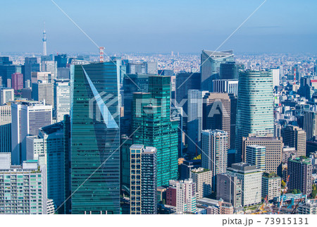 日本の東京都市景観 東京スカイツリーや丸の内、六本木などを望む