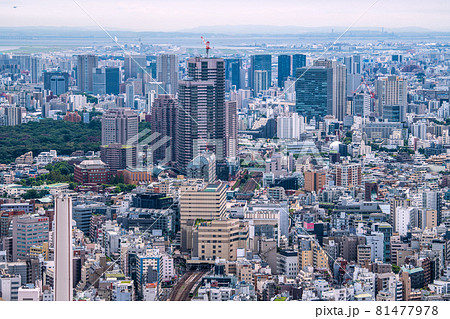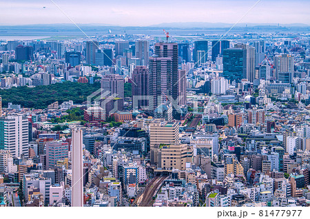 日本の東京都市景観 オフィスビル群やタワーマンションなどを望む