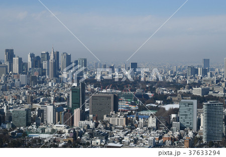 日本の東京都市風景「新宿や池袋の高層ビル群などを望む」=大雪の一夜明けで広がる青空・1月23日撮