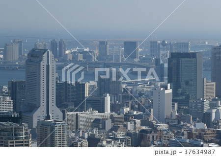 日本の東京都市景観「ビジネス街や東京スカイツリーなどを望む」