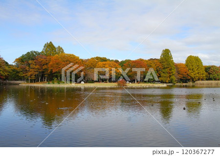 紅葉の森が水面に広がる:洞峰公園の秋の彩り