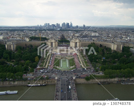 パリ・エッフェル塔から望むトロカデロ広場と都市の遠景