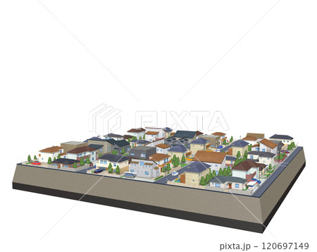 家 住宅 街 CG ジオラマ 地下鉄 BG 街並み 斜め 背景