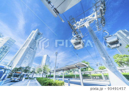 「神奈川県」快晴の横浜みなとみらい都市型ロープウェイの風景